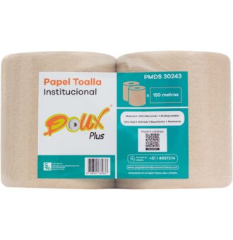 Original price was: S/ 10.50.S/ 9.97Current price is: S/ 9.97.Papel Toalla Institucional Blanco Doux Plus x 300 m x 2 Rollos