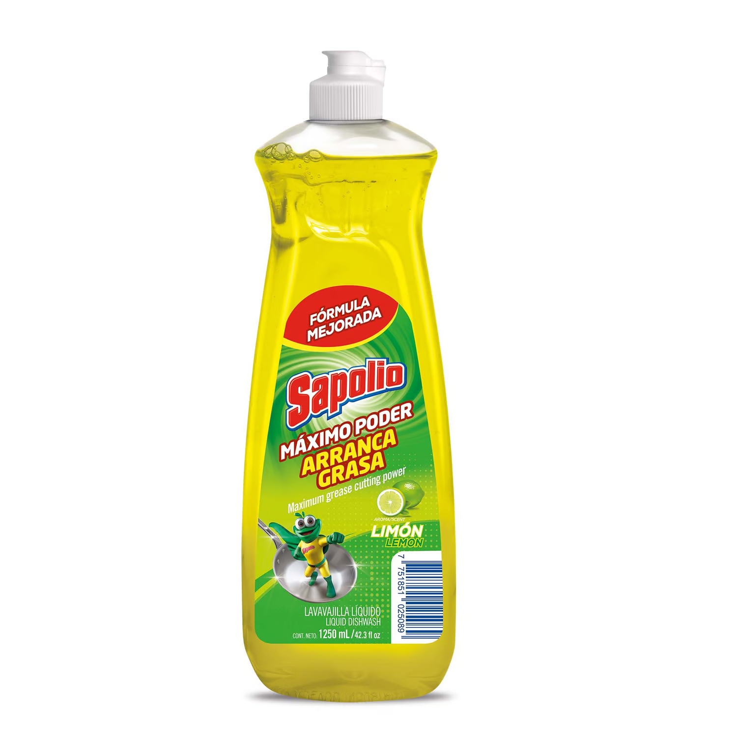 Ficha Técnica: Lavavajilla Líquido Sapolio Max Poder Limón 1250 mL